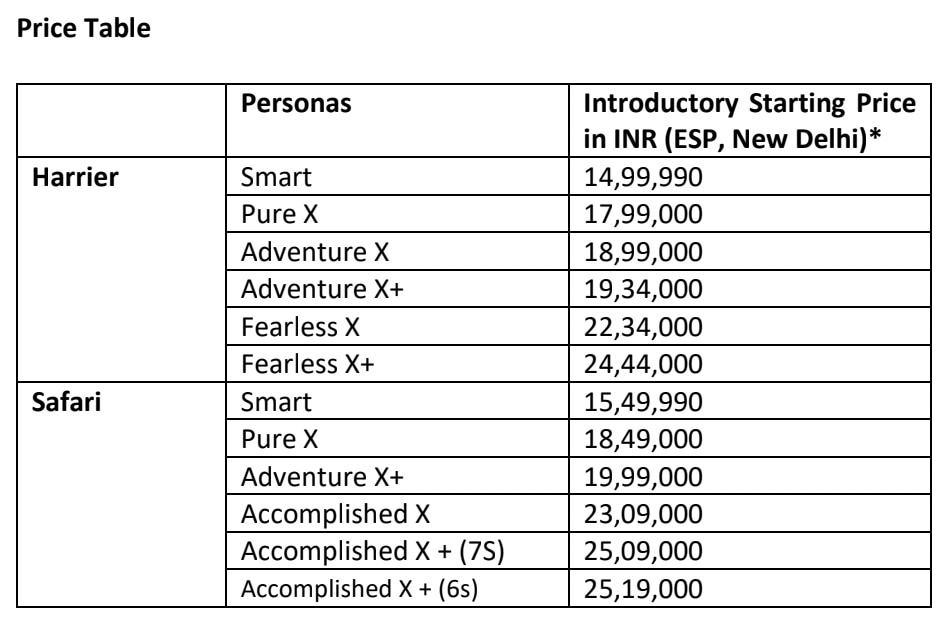- Tata Motors to launch All new Lifestyle X Persona in Harrier and Safari SUV