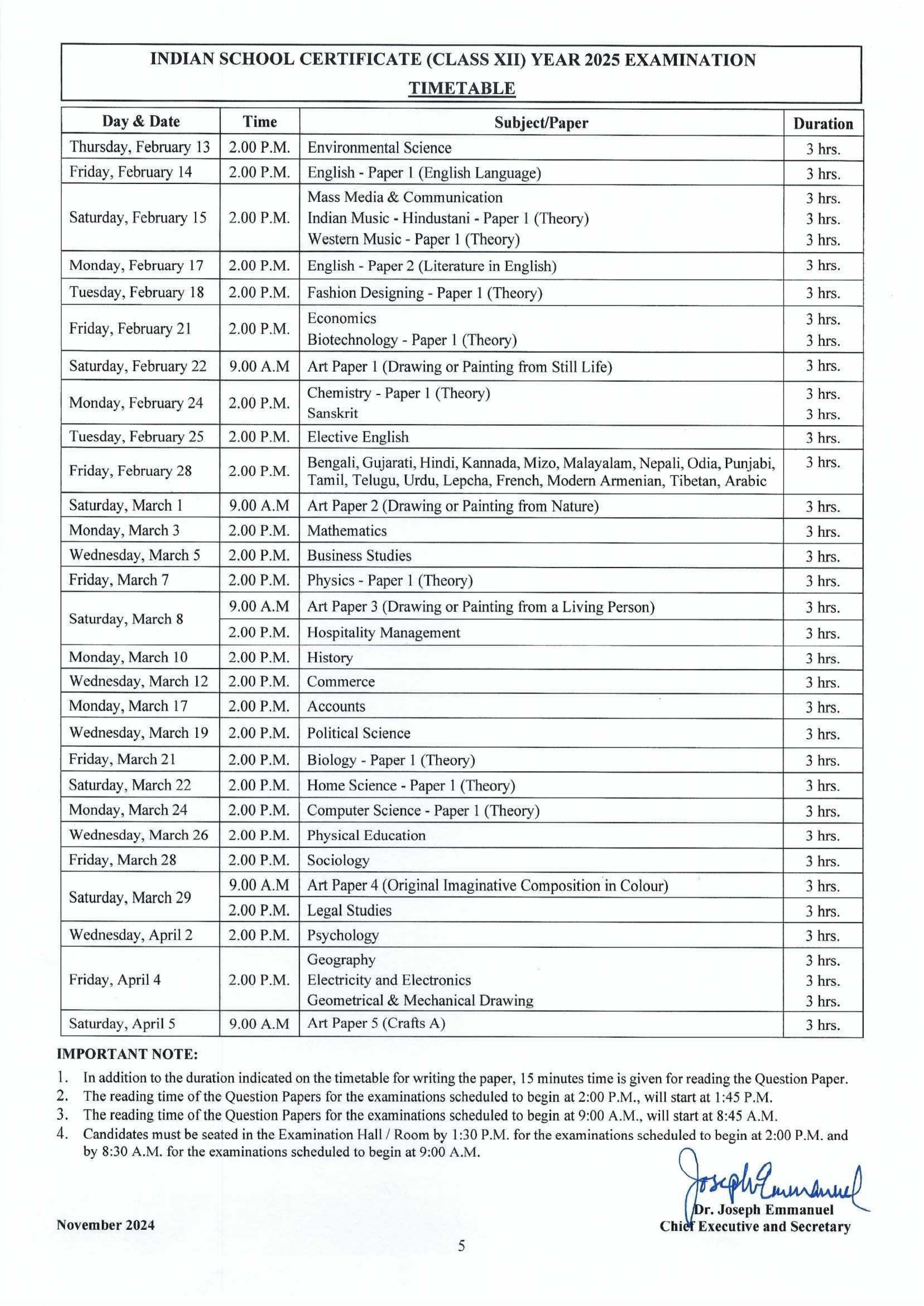 The Indian School Certificate Year 2025 examination results will be declared in the month of May 2025. The results will not be available from the office of CISCE in New Delhi.