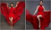 Taking to her Instagram handle, Ankita shared a plethora of pictures where she can be seen slaying in a red gown with a thigh-high slit. Accessorising her look with a pair of golden earrings, Ankita pulled back her hair in a bun as she struck sultry poses.
