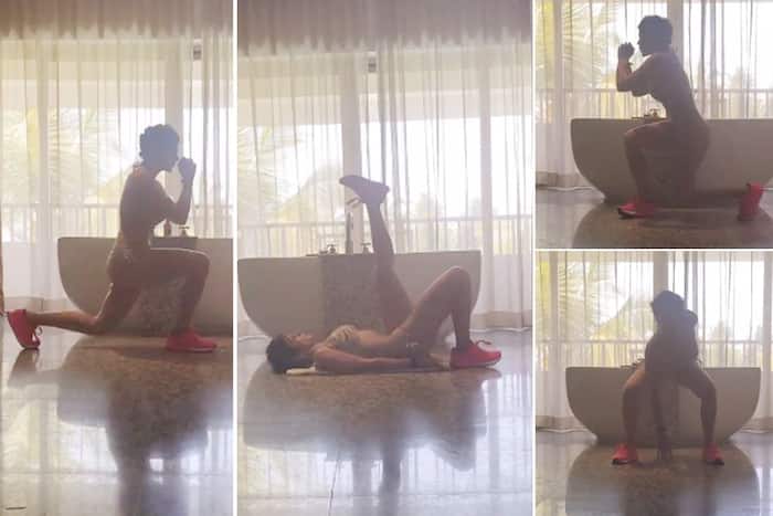 Mandira is best known for following a fit and healthy lifestyle. Her work-out videos are an inspiration for many. Mandira Bedi is now flaunting her bikini style while she is working out. In her latest Instagram post, the star can be seen performing intense workouts in a bikini top and bottom in front of a bathtub at her home. Mandira captioned the video as, ”The Bathtub, the Bikini and the Banging workout! A nice mix of lunge kicks, glute bridges, tricep dips and a decent sweaty calorie burn!! (Maine bhi Bikini mein Workout kiya!)
