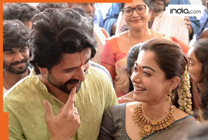 Freshly married Rashmika Mandanna and Vijay Deverakonda are winning hearts once again. After intimate wedding ceremony in Udaipur on February 26 couple travelled to Vijay hometown, Thummanpet in Mahbubnagar, Telangana to perform Satyanarayana Vratham at newly built home. Pictures from ceremony have now surfaced online and fans cannot stop talking about one special candid moment.