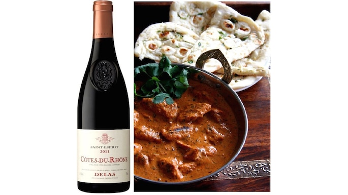 [Côtes du Rhône unoaked Chardonnay. | Photo Source: Pinterest | Chicken tikka masala. | Photo Source: Pinterest]