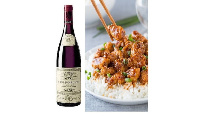[Louis Jadot Bourgogne Pinot Noir | Photo Source: Pinterest | General Tso’s Chicken | Photo Source: Pinterest]