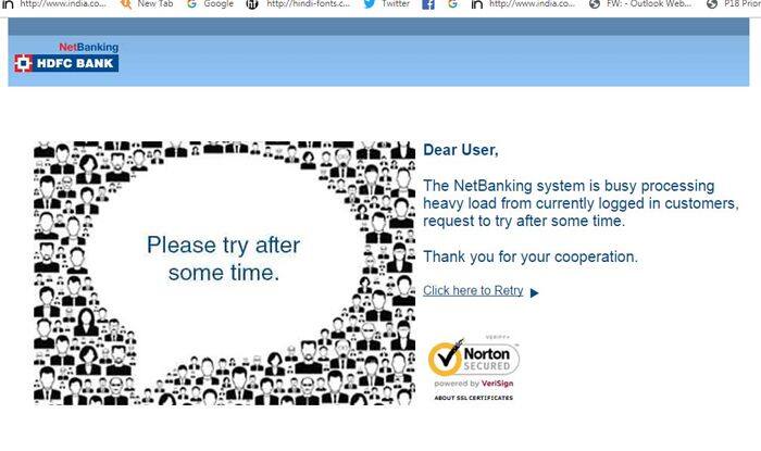 दरअसल, जो ग्राहक बैंक की वेबसाइट पर लॉगइन करने की कोशिश कर रहे हैं उन्हें संदेश मिल रहा है कि अभी इस पेज पर बहुत ज्यादा लोड है इसलिए आप थोड़ी देर बार कोशिश करें… मोबाइल ऐप और ऑनलाइन बैंकिंग में आ रही दिक्कत की वजह से देश के अग्रणी निजी बैंक की तकनीक पर सवाल उठने लगा है. एचडीएफसी हमेशा से दावा करता रहा है कि उसके पास बेहतरीन टेक्नोलॉजी है. उसे इसी साल बेस्ट डिजिटल बैंक का अवार्ड भी मिला था. एचडीएफ के पास करीब 4.5 करोड़ ग्राहक हैं जिसमें से करीब आधे ऑनलाइन बैंकिंग का इस्तेमाल करते हैं.