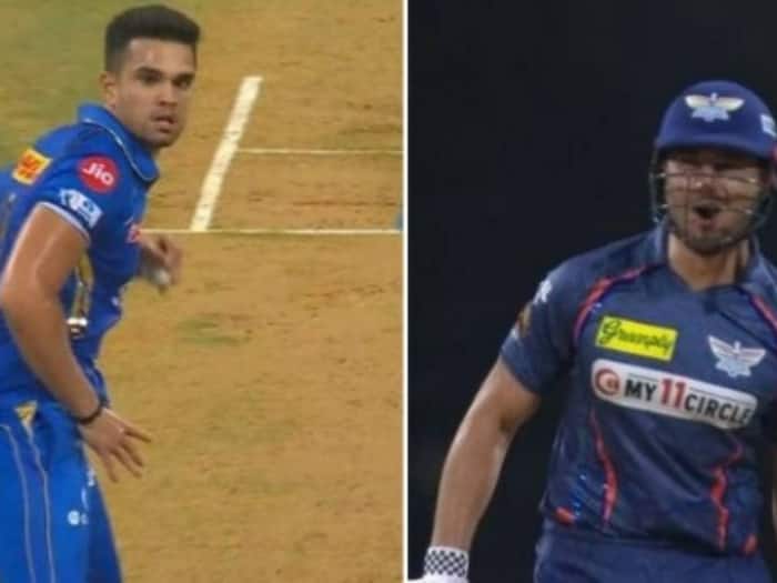 388 दिन बाद आईपीएल में प्लेइंग-11 में खेलने उतरे अर्जुन अपने पहले ही ओवर में खतरनाक गुस्से में दिखे. लखनऊ की बल्लेबाजी के दौरान पारी के दूसरे ओवर में अर्जुन गेंदबाजी अपना पहला ओवर लेकर आए. उनके सामने मार्कस स्टोयनिस बल्लेबाजी कर रहे थे. स्टोयनिस के सामने अर्जुन ने पहली चार गेंदें डॉट फेंक दी. इसमें से एक गेंद पर अंयायर ने स्टोयनिस को आउट भी दे दिया. लेकिन डीआरएस की वजह से स्टोयनिस बच गए. इसके बाद ओवर की आखिरी बॉल को स्टोयनिस ने वापस गेंदबाज की तरफ पुश किया.