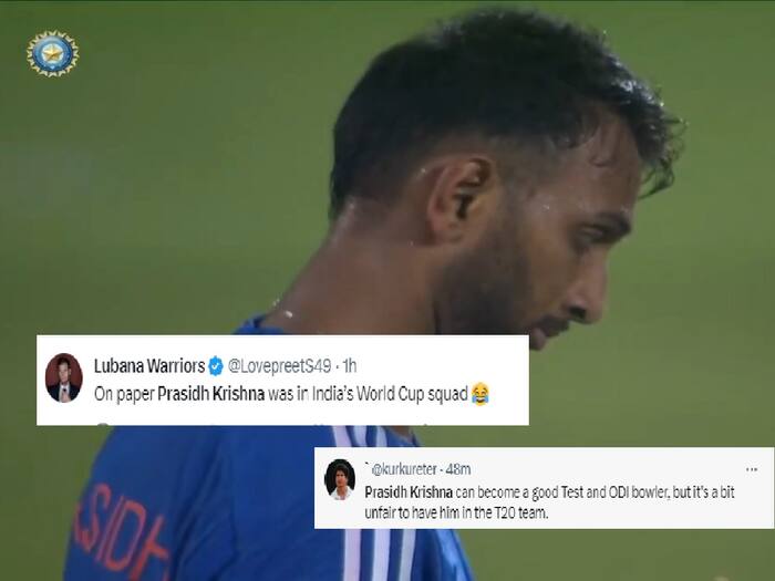 प्रसिद्ध कृष्णा ने चार ओवर के स्पेल में 50 रन खर्च किए और एक विकेट हासिल किया. उनके पहले ओवर में 13 रन, दूसरे ओवर में 19 रन, तीसरे ओवर में 10 रन और चौथे ओवर में 08 रन बने. इस स्पेल के बाद सोशल मीडिया पर इसके बाद उन्हें जमकर ट्रोल किया जा रहा है. सोशल मीडिया यूजर्स का कहना है कि विश्व कप टीम का हिस्सा रहे इस गेंदबाज का इस तरह का प्रदर्शन निराशाजनक है.