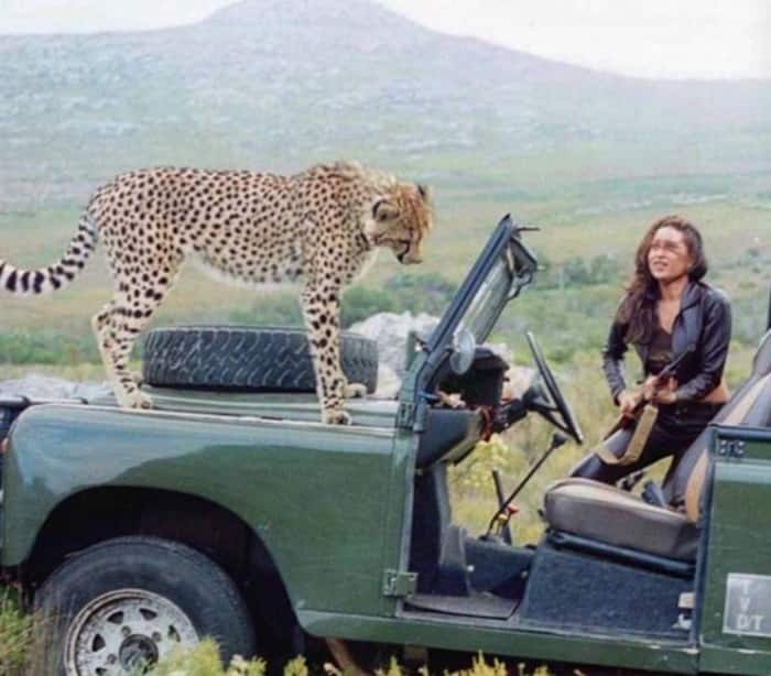 तस्वीर में हम करिश्मा को चीते के बगल में खड़े देख सकते हैं.