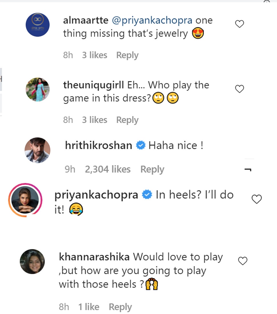 प्रियंका की इस तस्वीर पर लोग जमकर रिएक्ट कर रहे हैं. ऋतिक रोशन (Hrithik Roshan) ने भी प्रियंका को ट्रोल करते हुए कमेंट में लिखा ‘हा हा नाइस’. यही नहीं कुछ यूजर ने प्रियंका की ड्रेस और बास्केटबॉल के कॉम्बिनेशन पर भी सवाल उठाया है. एक यूजर ने लिखा- ”हील्स में? क्या सच में?’ तो अन्य यूजर ने लिखा- ‘क्या वह ऐसी ही ड्रेस में गेम खेलती हैं?.