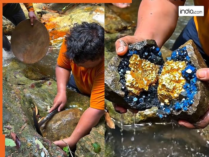 शख्स तुरंत हथौड़ी उठाता है और उस पत्थर को तोड़ने लगता है. आसपास बहता पानी और पत्थरों की आवाज वीडियो को और दिलचस्प बना देती है.