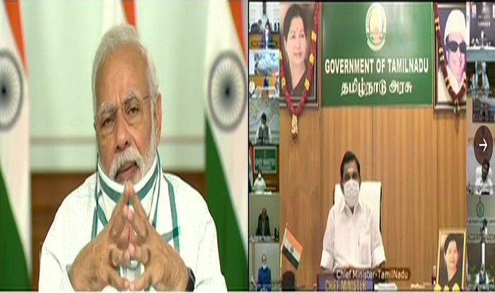 Tamil Nadu CM Edappadi K. Palaniswami attends video conference meeting of Chief Ministers with Prime Minister Narendra Modi, on COVID19 situation. pic.twitter.com/J0hrRCKYi7