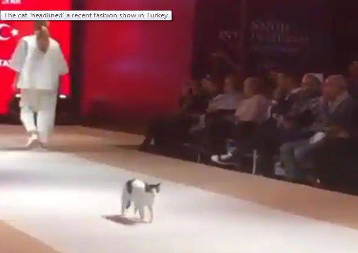 जी हां, ये सच है. ऐसा हुआ है. घटना है तुर्की की. यहां के डिजाइनर गोकसन हक्की अली के शो में कुछ ऐसा ही हुआ है. उनके शो में अचानकर कहीं से बिल्ली आ गई. पहले तो वो स्टेज पर एक कोने में बैठकर खेलती रही. तब वहां मॉडल्स कैटवॉक कर रही थीं.