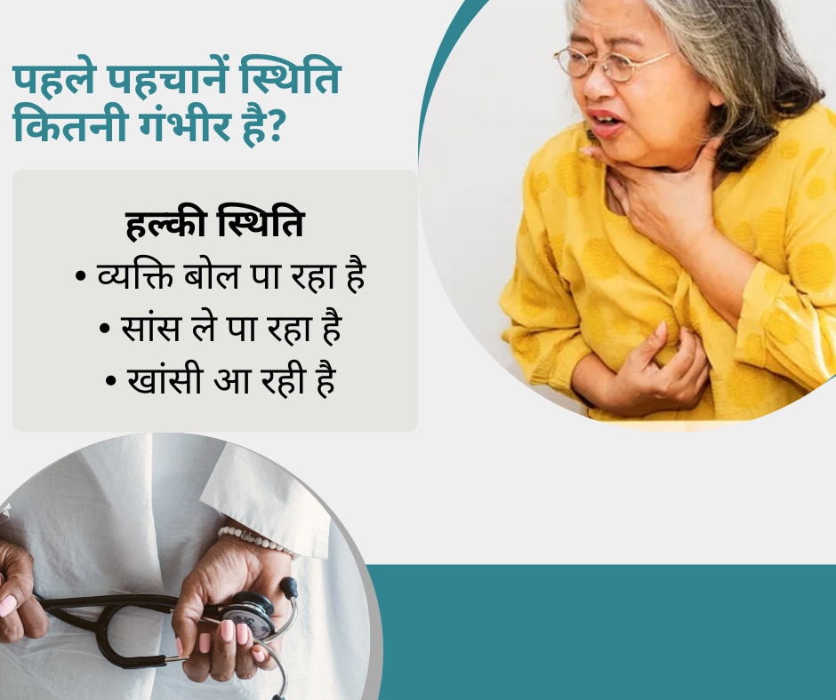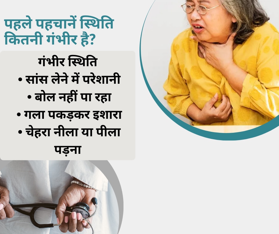 लेकिन अगर व्यक्ति को सांस लेने में परेशानी हो, वह बोल न पा रहा हो, गला पकड़कर इशारा कर रहा हो या उसका चेहरा नीला या पीला पड़ने लगे, तो यह गंभीर हालत है. ऐसी स्थिति में बिल्कुल भी देर नहीं करनी चाहिए.