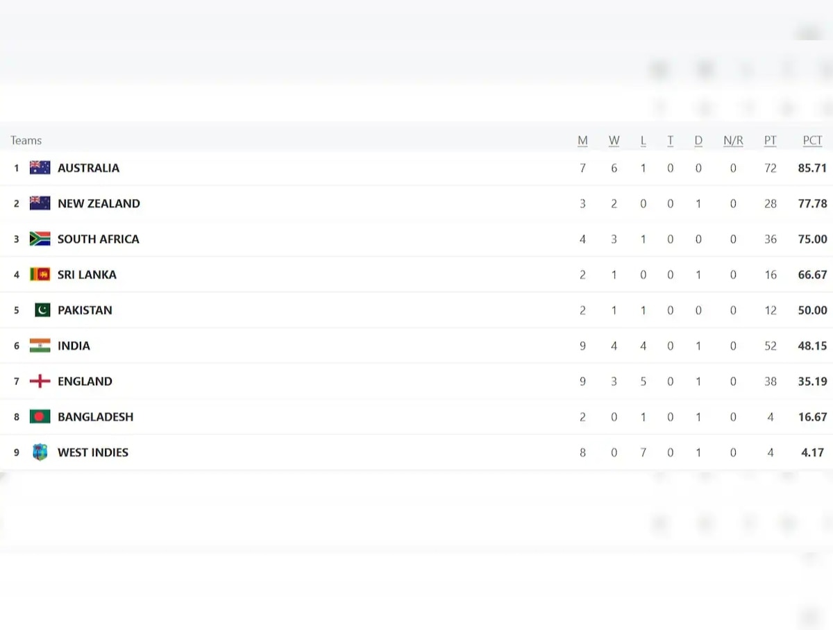 ऑस्ट्रेलिया के ठीक नीचे दूसरे स्थान पर न्यूजीलैंड की टीम बनी हुई है. कीवी टीम ने मौजूदा वर्ल्ड टेस्ट चैंपियनशिप साइकिल में अब तक 3 मैच खेले हैं. इनमें से उसे 2 मुकाबलों में जीत मिली है, जबकि 1 मैच ड्रॉ रहा है. इस प्रदर्शन के दम पर न्यूजीलैंड के खाते में 77.78 पीसीटी अंक हैं. लगातार अच्छा खेल दिखा रही न्यूजीलैंड की टीम ऑस्ट्रेलिया को कड़ी टक्कर देती नजर आ रही है.
