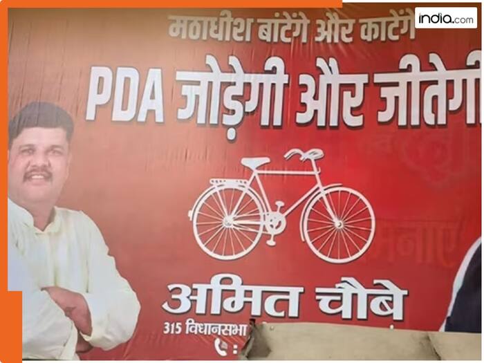 UP News: लखनऊ में सपा कार्यालय के बाहर एक पोस्टर लगा है. इस पर लिखा है मठाधीश बांटेंगे और काटेंगे, पीडीए जोड़ेगी और जीतेगी. इस नारे के जरिए पार्टी ने बीजेपी पर निशाना साधा है.