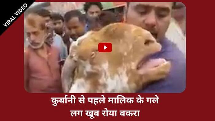 Bakre Ka Video: जानवर प्यार के भूखे होते हैं. बेजुबान जानवर को जब हम घर लेकर आते हैं तो वह कुछ ही दिनों में हमसे बहुत अटैच हो जाते हैं. अपने मालिक से खूब मोहब्बत करते हैं. मालिक से जुदाई का वक्त आता है तो इनका भी दिल टूट जाता है और यह रोने लगते हैं. ऐसा ही एक वीडियो सोशल मीडिया पर तेजी से वायरल हो रहा है. वायरल वीडियो में एक बकरा मालिक के गले से लिपट कर रोता नजर आ रहा है. दरअसल बकरीद के मौके पर कुर्बानी देने के लिए एक मालिक अपने बकरे का सौदा करने आया था. इस दौरान मालिक से जुदा होने की वजह से बकरा मालिक के गले लगकर इंसानों की तरह फूट-फूटकर रोने लगा. बकरे को देख वहां मौजूद लोगों की आंखों में भी आंसू आ गए. बकरे का यह इमोशनल कर देने वाला वीडियो आप भी देखें.