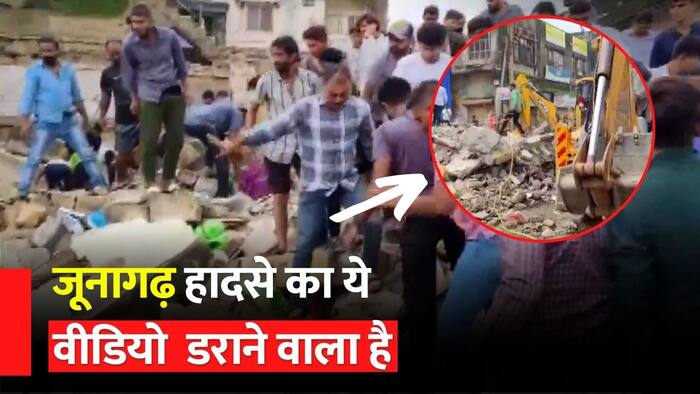 Building Collapsed In Junagadh: गुजरात के जूनागढ़ में बड़ा हादसा हुआ है. यहां दो मंजिला इमारत ढह गई. इस दौरान बिल्डिंग के मलबे में कई लोगों के दबे होने की आशंका है. सूचना मिलते ही रेस्क्यू टीम मौके पहुंच गई है और मलबे में फंसे लोगों की तलाशी का काम शुरू कर दिया है. देखें घटना का वीडियो
