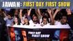 बॉलीवुड के सुपरस्टार Shah Rukh Khan की फिल्म Jawan आज सिनेमाघरों में रिलीज़ होने के बाद से ही धमाल मचा रही है. किंग खान के फैंस में Jawan को लेकर अलग क्रेज देखने को मिल रहा है और उनके फैंस सुबह का पहला शो देखने के लिए पहुंच गए हैं. इतना ही नहीं Jawan की रिलीज़ के बाद से ही सिनेमाघरों में जश्न का माहोल दिखाई दे रहा है. लोग ढोल और नगाड़ो पर डांस करते हुए Jawan का स्वागत कर रहे है. Shah Rukh Khan को बड़े परदे पर डांस करते देख लोग खुद भी डांस करने लगे हैं. फैंस सुबह 6 बजे से नाचते – गाते और पटाके फोड़ते हुए दिखाई दे रहे है. सिर्फ थियेटर के बाहर ही नहीं बल्कि थियेटर के अंदर भी फैंस जमकर डांस कर रहे है.
