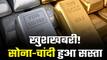 Gold-Silver Price Today: अगर आप सोने-चांदी की खरीददारी करने का प्लान बना रहे हैं तो आपके लिए खुशखबरी है. सोना-चांदी के रेट में आज काफी गिरावट दर्ज की गई है. सोने में 800 रुपए से ज्यादा तक की कमी आई है. वहीं चांदी में 1500 रुपए की बड़ी गिरावट देखने को मिली है. सप्ताह भर में सोने-चांदी के दामों में 4-7 प्रतिशत तक की गिरावट दर्ज की गई है. मल्टी कमोडिटी एक्सचेंज ऑफ इंडिया (MCX) पर सोना 51 हजार 500 और चांदी 65 हजार के आसपास है. वीडियो में सोने-चांदी की कीमत के बारे और भी विस्तार से जानें.
