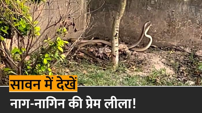 Naag Nagin Video: हिंदू धर्म में सावन माह का एक अलग स्थान है, जिसमें महादेव भोलेनाथ की पूजा-अर्चना की जाती है और सोमवार को शिवलिंग पर जल एवं दूध चढ़ाया जाता है. सावन के मौसम में नाग देवता के दर्शनों को बड़ा भाग्यशाली माना जाता है. ऐसा ही एक वीडियो इंटरनेट पर सामने आया है जिसमें नाग के साथ नागिन भी नजर आ रही है. नाग- नागिन के जोड़े का एक साथ दिखाई देना और प्रेम अठखेलियां करते दिखाई देना बड़ा दुर्लभ होता है. देखें वीडियो