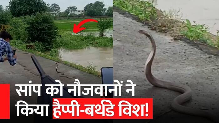 Snake Birthday Celebration Video: नाग पंचमी के दिन एक वीडियो बड़ी ही तेजी से सोशल मीडिया पर वायरल हो रहा है, जिसमें कुछ लड़के नाग देवता को तालियां बजाकर बर्थ-डे विश कर रहे हैं. वीडियो में लड़के नाग देवता को हैप्पी बर्थ-डे नागो भाई कहते दिख रहे हैं. आप भी देखिये ये मजेदार सेलिब्रेशन का वीडियो