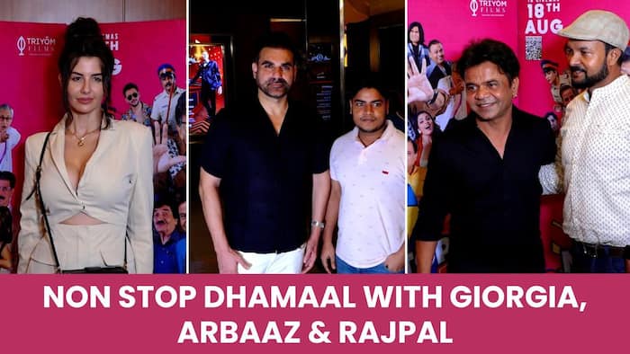 Non Stop Dhamaal के स्क्रीनिंग के दौरान अरबाज़ अपनी गर्लफ्रेंडजॉर्जिया के साथ नजर आये. जॉर्जिया का लुक देखते बन रहा था. उन्होंने लो नेक आइवरी ड्रेस पहन रखा था. वहीँ अरबाज़ भी कैजुअल ऑउटफिट में काफी हैंडसम दिखे. इस दौरान राजपाल यादव भी उनकेसाथ देते नजर आये. इस इवेंट पर कई और एक्टर्स और एक्ट्रेसेस ने शिरकत की. नॉन स्टॉप धमाल अपने नाम की तरह ही इसके स्क्रीनिंग पर भी काफी मस्ती और धमाल के मूड में दिखे स्टार्स.