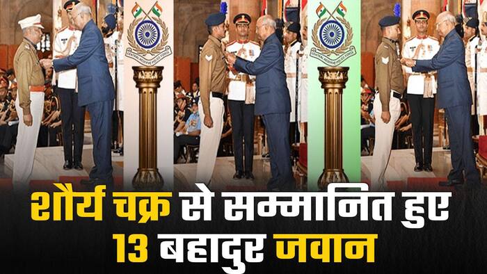 Shaurya Chakra Award 2022: राष्ट्रपति रामनाथ कोविंद ने भारतीय सेना के 13 जवानों को देश के तीसरे सबसे बड़े वीरता पुरष्कार शौर्य चक्र से सम्मानित किया है. जम्मू-कश्मीर में आतंक विरोधी अभियानों में बहादुरी के लिए 6 शहीदों को मरणोपरांत शौर्य चक्र से सम्मानित किया गया. इन शहीदों के परिजनों को राष्ट्रपति भवन में आयोजित समारोह में सम्मानित किया गया. वीडियो में देखें.