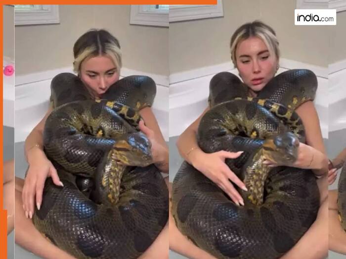 Ajgar Ka Video: सोशल मीडिया पर वायरल हो रहा एक चौंकाने वाला वीडियो, जिसमें एक महिला विशाल अजगर के साथ बाथटब में नहा रही है. यह नजारा देखकर आपकी रूह कांप सकती है.