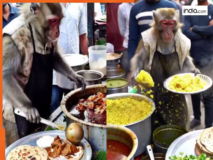 ध्यान खींच रहे वीडियो में एआई ने एक बंदर को इंसानों की तरह कपड़े पहनाकर एक ठेले पर खड़ा कर दिया है. ठेले पर रोटी, सब्जी और पोहे जैसे खाने के सामान रखे हैं और बंदर बड़े ही सलीके से ग्राहकों को खाना सर्व कर रहा है. वह प्लेट में खाना परोसता है, ग्राहक को देता है और बाकायदा पैसे भी लेता हुआ नजर आता है. बंदर की चाल-ढाल और हरकतें बिल्कुल किसी इंसानी वेंडर जैसी लग रही हैं. वीडियो में भीड़ भी देखी जा सकती है जो उसके ठेले पर खाने के लिए टूट पड़ी है.