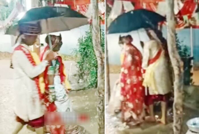अक्सर आपने देखा होगा कि शादियों में बारिश आ जाती है सारी तैयारियां बर्बाद हो जाती हैं. सभी इसी कामना में रहते हैं कि कब बारिश बंद हो और शादी संपन्न हो. लेकिन वायरल हो रहे इस वीडियो में कुछ अलग ही नजारा देखने को मिला. इसमें देख सकते हैं कि शादी वाले दिन बारिश आ जाती है. सभी मेहमान इधर-उधर भाग जाते हैं. लेकिन यहां दूल्हा-दुल्हन डटे रहते हैं. छतरी लेकर दोनों फेरे पूरे करने में लग जाते हैं. दूल्हा-दुल्हन का यह डेडिकेशन देख सोशल मीडिया भी हैरान रह गया.