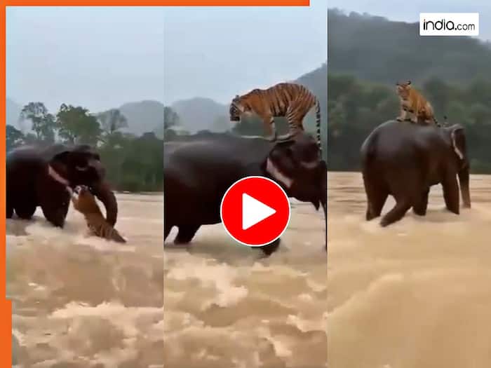 Hathi Ka Video: वाइल्ड एनिमल से जुड़े नजारे सोशल मीडिया पर खूब देखने को मिलते हैं. इनमें ज्यादातर जानवरों के बीच फाइट ही नजर आती है. मगर कई बार उनके बीच इमोशनल बॉन्ड भी दिख ही जाता है. फिलहाल ऐसा वीडियो सामने आया है जिस पर किसी को भी यकीन नहीं हो रहा है. नजारा हाथी और बाघ से जुड़ा हुआ है. अक्सर बाघ औ हाथी की भिड़ंत के बारे में ही हमें सुनने को मिलता है. मगर इस बार हाथी ने एक खतरनाक बाघ की जान बचाई. अगर समय पर हाथी नहीं पहुंचता तो हो सकता था कि बाघ की जान चली जाती.