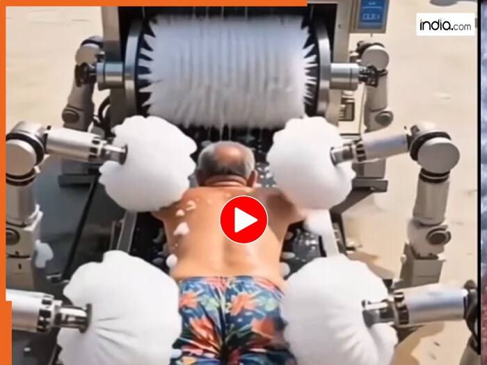 वायरल वीडियो में दिख रहा है कि एक शख्स मशीन पर आराम से लेटा हुआ है. मशीन के चारों तरफ हाथों जैसे कई टूल्स लगे हुए हैं, जो एक-एक करके काम करना शुरू कर देते हैं. सबसे पहले ये टूल्स साबुन छोड़ते हैं और फिर धीरे-धीरे शरीर को रगड़ना शुरू कर देते हैं. ये प्रक्रिया बिलकुल वैसे ही होती है जैसे कोई इंसान आपको नहला रहा हो. सबसे दिलचस्प बात है, वो यह कि शख्स को कुछ भी करने की जरूरत नहीं पड़ती. न ही साबुन उठाना पड़ता है, न ही पानी डालना. मशीन खुद ही एक तय प्रक्रिया से चलती है. जब शरीर पर साबुन लग जाता है, तो मशीन खुद ही उस व्यक्ति को धीरे-धीरे ऊपर की ओर ले जाती है.
