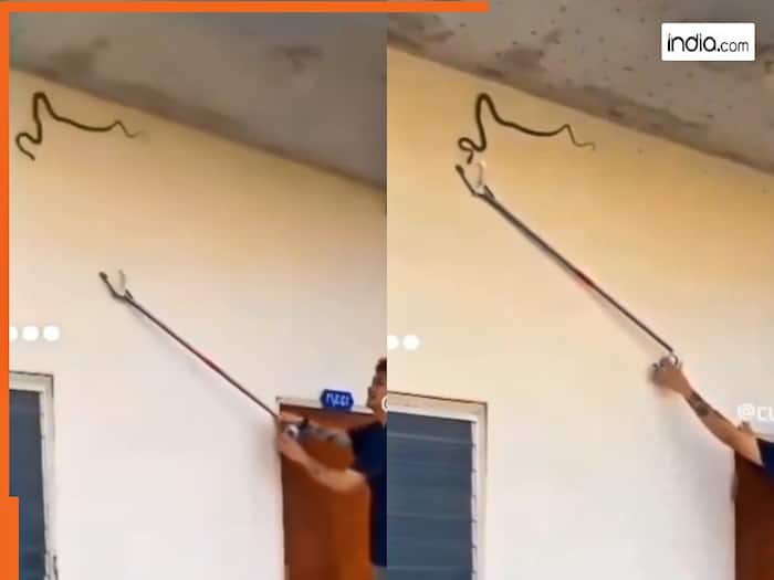 वायरल वीडियो में देख सकते हैं कि एक जहरीला सांप घर की बाहरी दीवार पर रेंगता दिखाई देता है. घबराए घरवालों ने तुरंत एक स्नेक कैचर को बुलाया. सांप को पकड़ने के लिए स्नेक कैचर कुर्सी पर चढ़कर दीवार तक पहुंचता है. अपने खास औजार से उसे काबू में करने की कोशिश करता है. जैसे ही स्नेक कैचर ने अपने टूल को सांप के मुंह के पास ले जाने की कोशिश की, सांप ने बचने के बजाय सीधा हमला कर दिया. वीडियो में साफ दिखता है कि सांप हवा में छलांग लगाते हुए उड़ता हुआ सीधे स्नेक कैचर के शरीर से जा टकराता है.