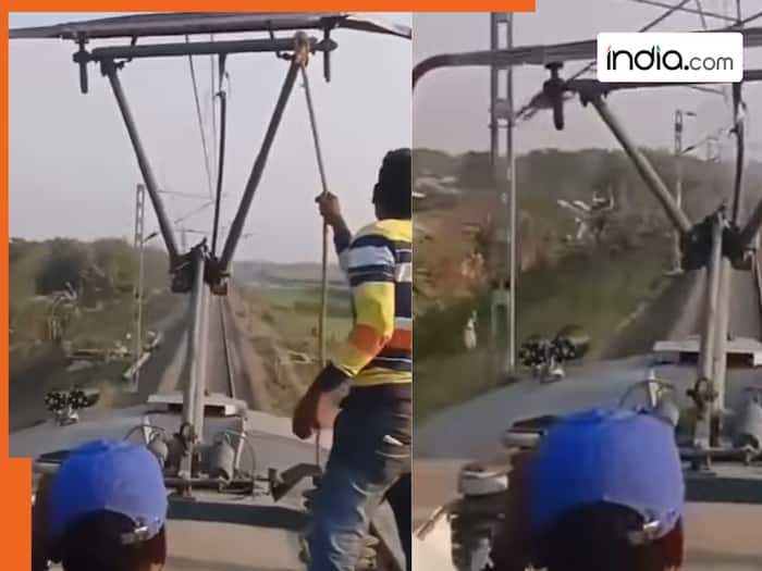 Train Ka Video: रेल इंजन के ऊपर चढ़ शख्स ने रस्सी से रोक दी ट्रेन, लोग बोले- कोई मूवी चल रहा है क्या?