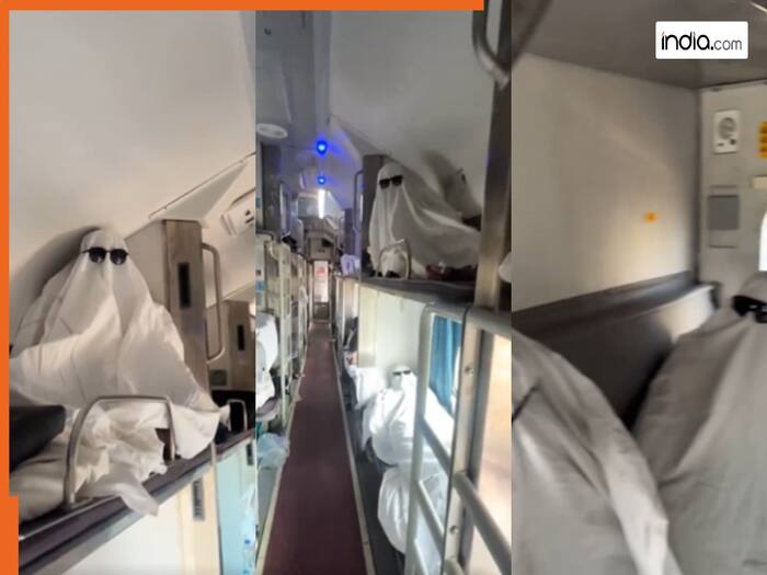 एक्स पर शेयर किए गए वीडियो में आप देखेंगे कि ट्रेन की एक बोगी में कुछ अलग ही नजारा दिखाई दिया. सबने एसी बोगी में मिलने वाली सफेद चादर को सिर से लेकर पांव तर ओढ़ लिया. फिर काला चश्मा ऊपर से पहन लिया. ऐसा करके सभी अपनी-अपनी सीट पर बैठ गए. कुछ लेट गए. नीचे से लेकर ऊपर की सीट तक हर जगह एक जैसा ही सीन फिर नजर आने लगा. मालूम होता है कि सबने इसके लिए पहले ही प्लान बनाया होगा. इस दौरान कोई अन्य यात्री या टीटीई आए तो क्या होगा इसका अंदाजा आप खुद ही लगा सकते हैं.