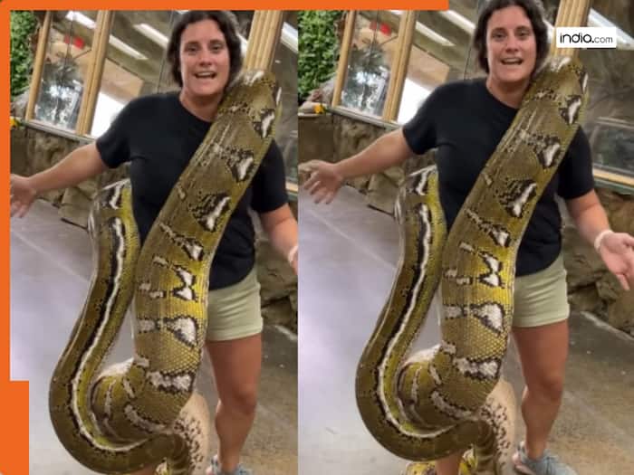 वायरल हो रहे वीडियो में देखा जा सकता है की, महिला एक बेहद ही विशाल अजगर को अपने कंधे पर उठाए हुए है. यह अजगर इतना बड़ा और मोटा है कि शायद ही किसी ने अपनी पूरी जिंदगी में इतना विशाल सांप देखा होगा. यह देखकर हैरानी होती है कि महिला ने बिना किसी डर या हिचकिचाहट के इतने बड़े और खतरनाक जीव को अपने शरीर पर रखा हुआ है. हम देखते हैं कि आमतौर पर लोग छोटे-से-छोटे सांपों को देखकर भी उनसे दूर भागने लगते हैं और उन्हें छूने तक की हिम्मत नहीं जुटा पाते है. वीडियो में एक पल ऐसा भी आता है जब अजगर महिला के एक पैर को जकड़ लेता है, फिर भी उसके चेहरे पर डर नहीं दिखाई देता है.