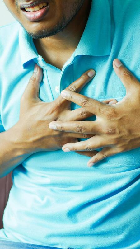 इसके लक्षणों में हार्ट अटैक जैसे लक्षण शामिल हैं, जैसे कि सीने में दर्द, धड़कन का तेज होना और सांस लेने में दिक्कत होना वा गले में अटकन या घुटन जैसा अनुभव हो सकता है.