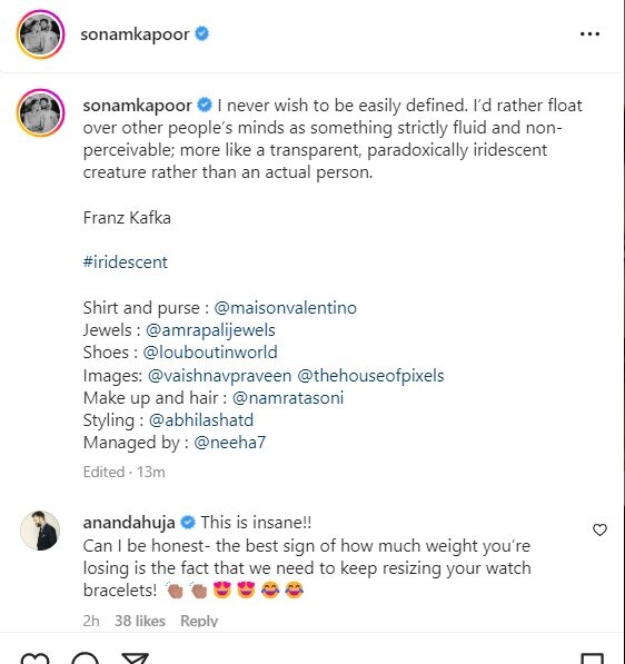 What drew the netizen’s attention is, Anand Ahuja’s comment on Sonam’s pics. He wrote, “This is insane!! Can I be honest- the best sign of how much weight you’re losing is the fact that we need to keep resizing your watch bracelets!” Anil Kapoor wrote, “Slowly but steadily getting there.”