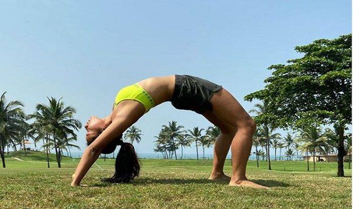 In her recent Instagram post, Ankita has shared a picture of her workout session. In the picture, she can be seen doing Chakrasana in a green sports bra and mini shorts. She seems to be in a garden by a beach. Ankita captioned her picture, “In transition but slowly getting there. Time has all the answers just have faith and carry on.”