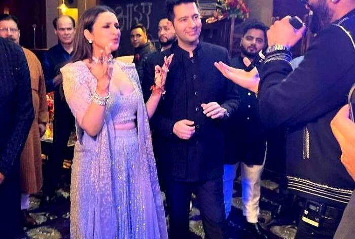 Parineeti Chopra-Raghav Chadha's Sangeet: The couple hosted an epic cocktail evening on September 23, 2023. For the night, the bride-to-be complemented the groom-to-be in a shimmery and elegant co-ord set - See viral photos from the evening