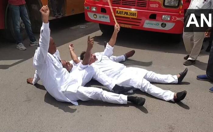 Congress leaders were detained by police during a protest against the Central government on price rise and unemployment in Delhi pic.twitter.com/uZvfJMhiIG