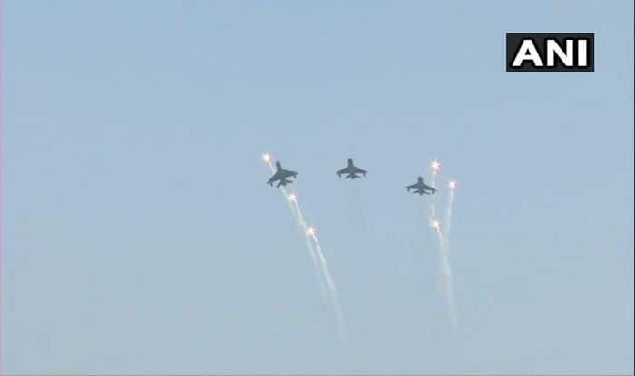 Ghaziabad: Aircraft of Indian Air Force fly at Hindon Air Base during the event on #AirForceDay today. Wing Commander #AbhinandanVarthaman flew a MiG Bison Aircraft, 3 Mirage 2000 aircraft & 2 Su-30MKI fighter aircraft were also flown by pilots who took part in Balakot air strike pic.twitter.com/nlEqavrj3w