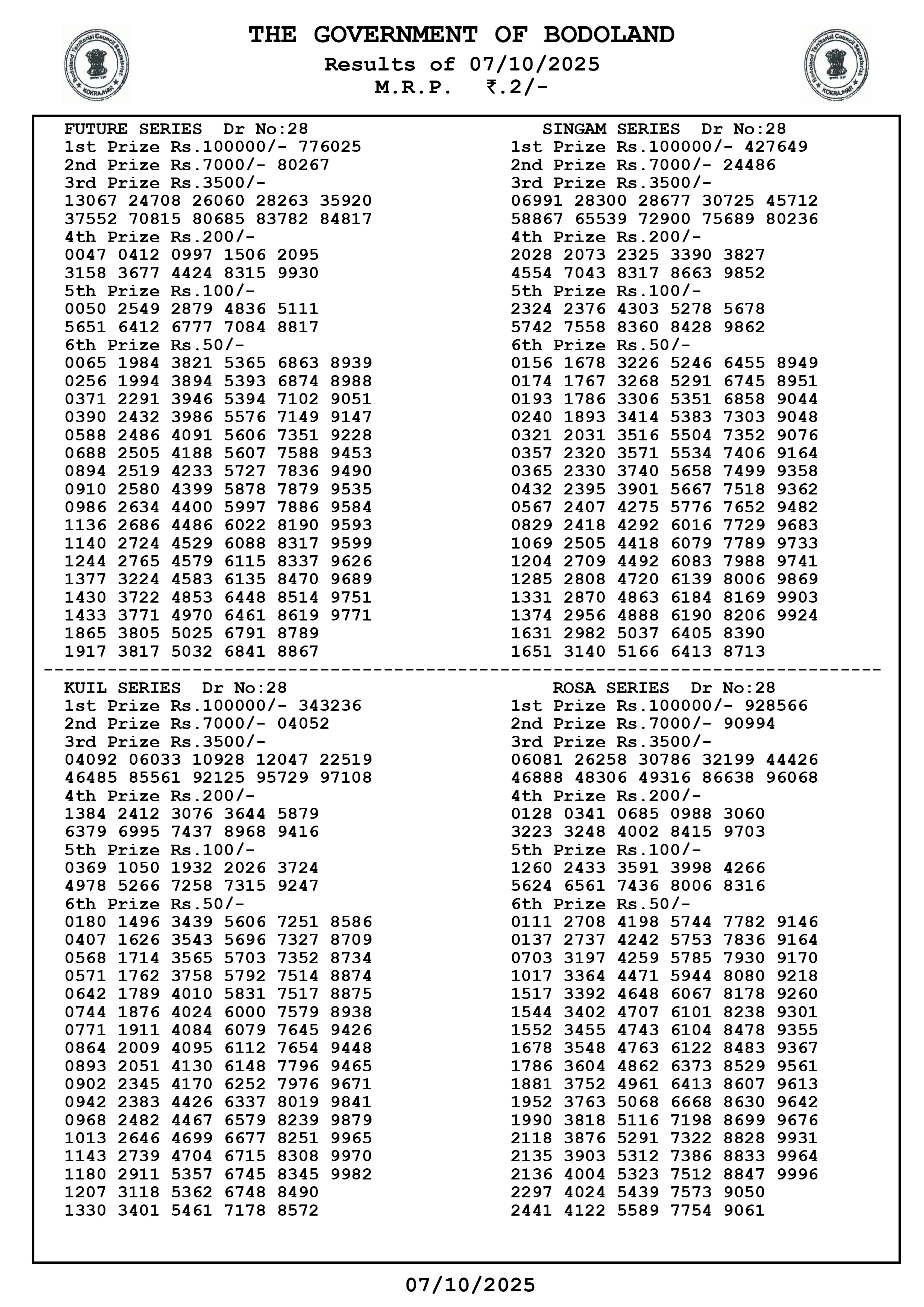 Bodoland Lottery Result Today LIVE Updates for October 07, 2025: The Bodoland Lottery Department will declare the Bodoland Lottery Result today, October 07, 2025, at 3:00 PM. Usually, the Bodoland Lottery is played three times a day. Several people buy Bodoland Lottery tickets.