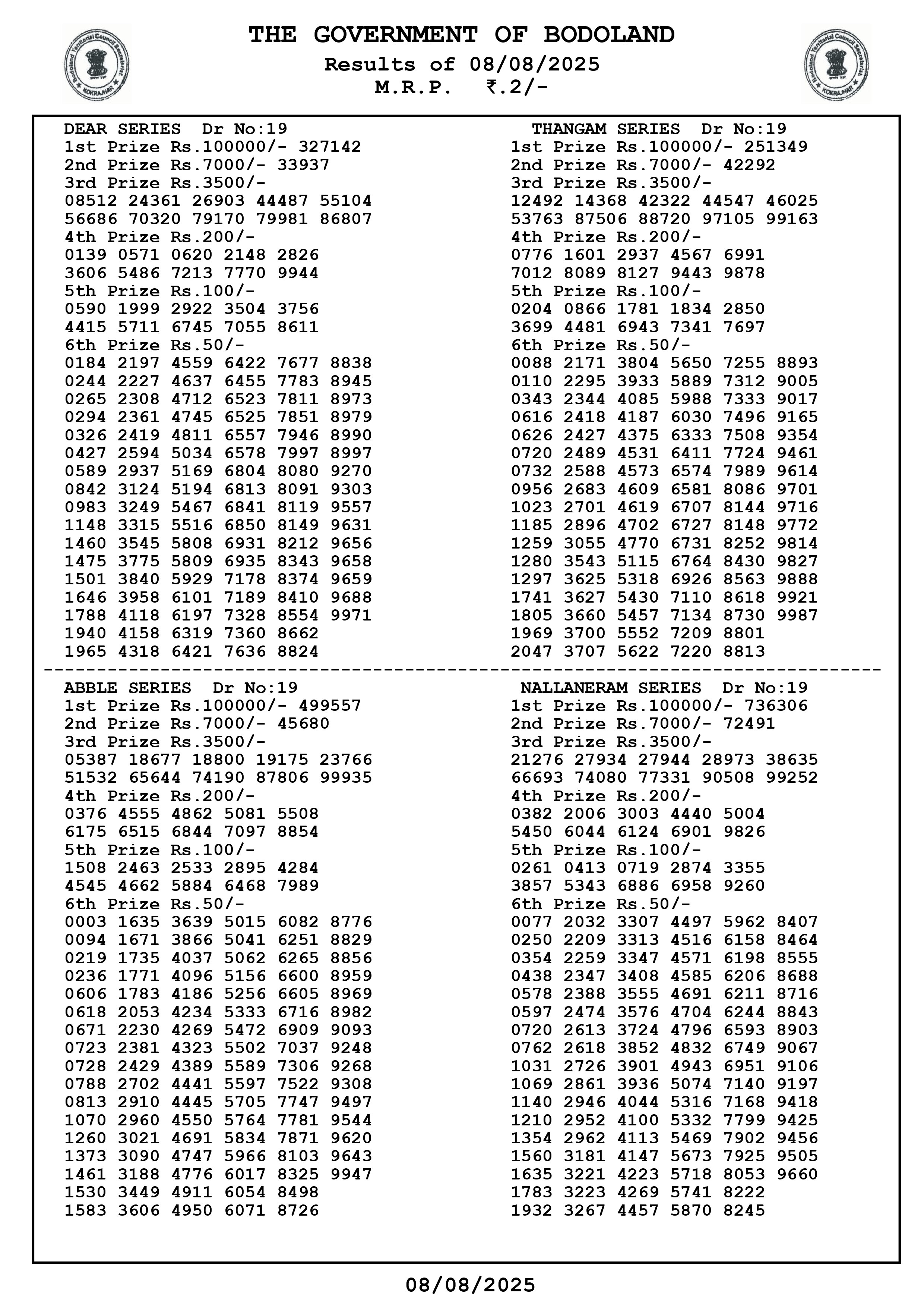 Bodoland Lottery Result Today LIVE Updates for August 08, 2025: The Bodoland Lottery Department will declare the Bodoland Lottery Result today, August 08, 2025, at 3:00 PM. Usually, the Bodoland Lottery is played three times a day. Several people buy Bodoland Lottery tickets.