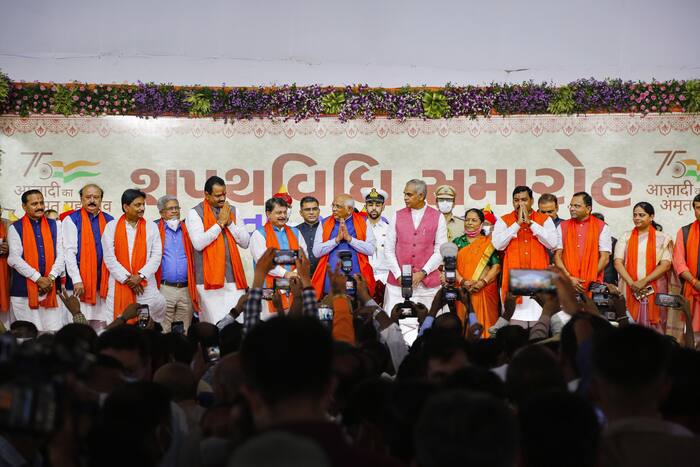 Governor Acharya Devvrat administered the oath to 10 cabinet ministers and 14 ministers of state, including five ministers of state with independent charge. CM Bhupendra Patel, 59, who was sworn in as the 17th chief minister of the state on Monday, was present at the Raj Bhavan ceremony, along with Rupani, whose sudden resignation from the post on Saturday led to the formation of the new ministry.