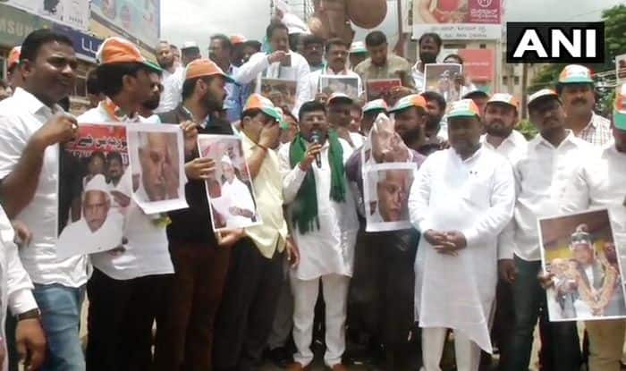 New Delhi: Congress workers in Karnataka held a protest in Hubli on Wednesday against the Yediyurappa-led government’s decision to cancel Tipu Jayanti celebrations in the state.