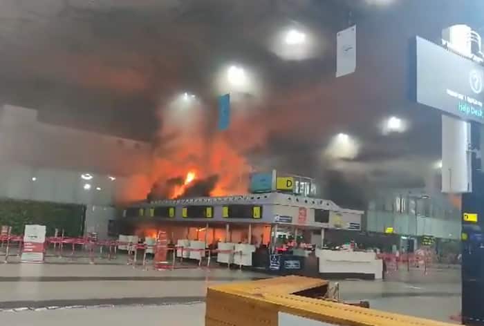 Visuals from the airport showed red hue flames and plumes of smoke erupting from the portal. At least three fire engines rushed to the spot and the situation is under control, officials said.