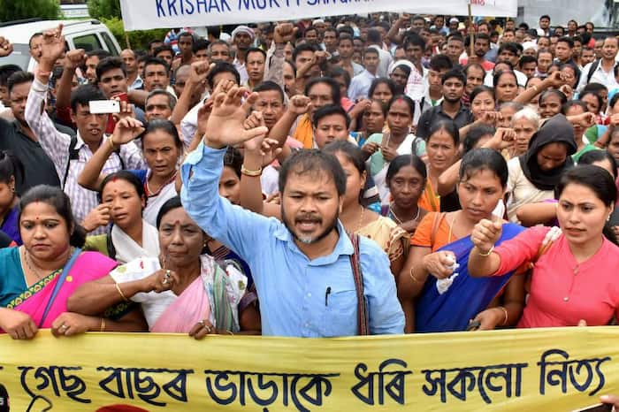 Akhil Gogoi with activists during a protest rally in Guwahati (PTI)