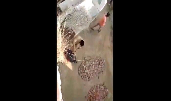 The cop first hits the man in the face, and then places his shoe on the latter’s chest and starts thrashing him with a cane. Even though the man keeps begging for forgivness, the thrashing does not stop. The cop is also heard shouting abuses at the man.