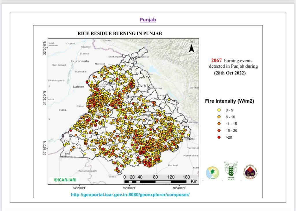 As per the Standard ISRO Protocol, for the period of 15th September 2022 to 28th October 2022, total 10,214 paddy residue burning events have been reported in Punjab compared to 7,648 for the same period during the last year i.e., a significant increase of about 33.5%.