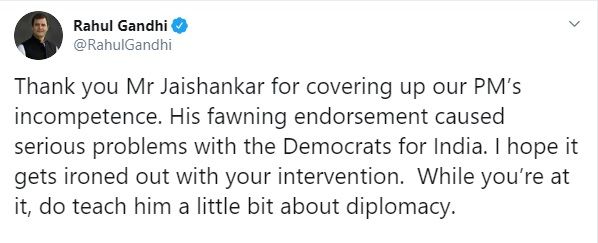Thank You For Covering up PMs Incompetence, Rahul Gandhi Attacks EAM Jaishankar For Defending Modis Abki Baar, Trump Sarkaar Remark